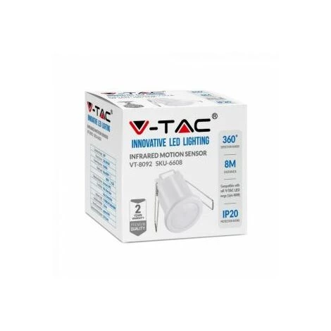 Détecteur de Présence Infrarouge Encastrable V-TAC Blanc VT-8092