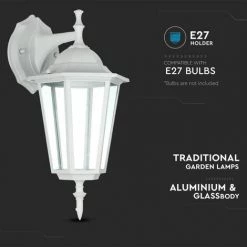 V-TAC Lanterne Murale LED Avec Douille E27 (Max 60W) Attaque Vers Le Bas Couleur Blanc IP44
