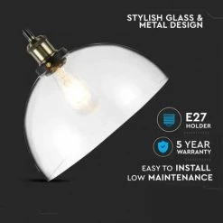 V-TAC Lustre LED Vintage En Verre Avec Douille E27 (Max 60W) Couleur Transparente D: 200mm