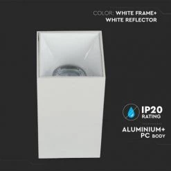 V-TAC Support De Projecteur LED Carré Montage En Surface GU10 Corps Blanc Réflecteur Blanc