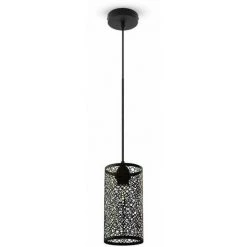 V-TAC Lustre LED Cylindre Nid D’Abeille En Métal Satiné Avec Douille E27 (Max 60W) Couleur Noir Mat
