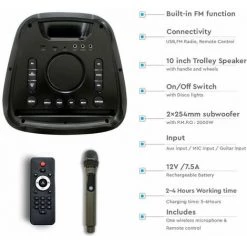 V-TAC Haut-parleur De Chariot Rechargeable 100W Avec Télécommande Filaire Microphone RVB Pour Haut-parleurs 2 * 10 Pouces