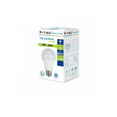 Lot de 50 Ampoules LED E27 A60 V-TAC 8,5W VT-2099 – Blanc neutre – 4000K – 200 deg