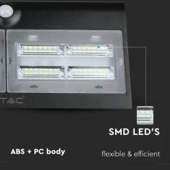 V-TAC Applique Solaire LED Avec Batterie 6,8W 60LED Avec Capteur PIR Couleur Noire 4000K IP65