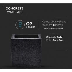 V-TAC Applique LED Carrée G9 (Max 25W) En Béton Gris Foncé IP20