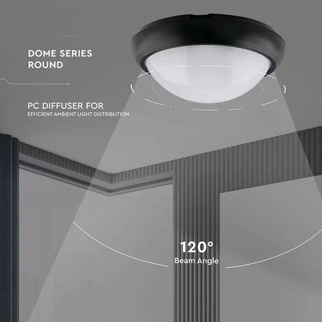 Plafonnier extérieur Noir IP54 12W equi 60W