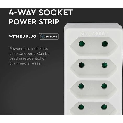 Adaptateur multiprise avec 4 prises avant 2,5 A et prise Shuko couleur blanche