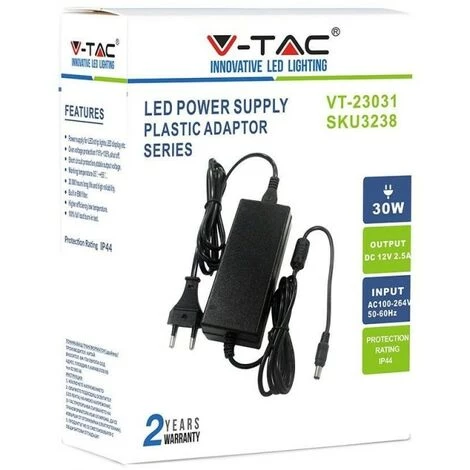 Alimentation Plastique 30W 12V 2,5A Plug & Play avec Jack 2,1 Couleur Noir IP44