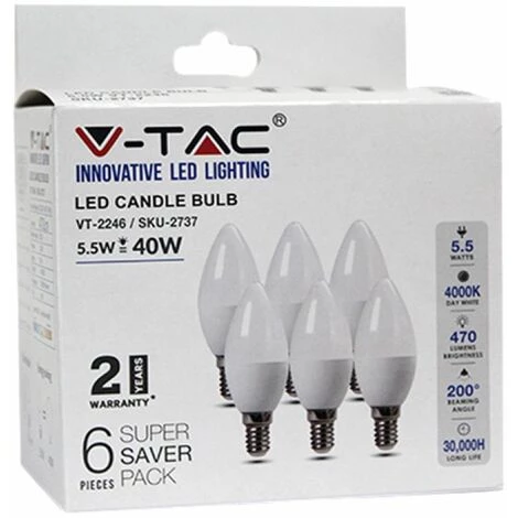 Ampoule LED E14 5,5W 4000K Bougie (Boîte 6 pièces)