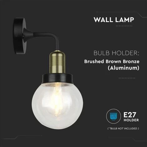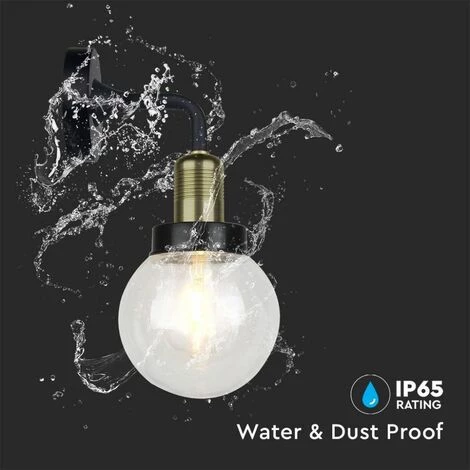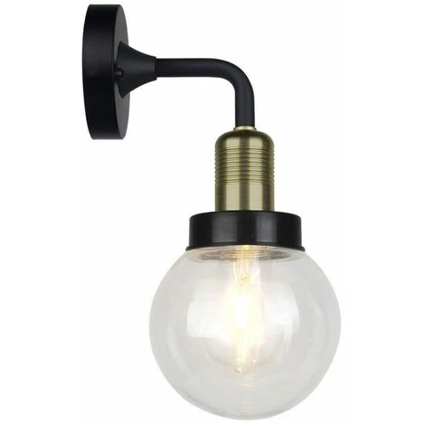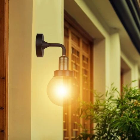 Applique LED Lanterne en Verre avec Douille E27 Noir Mat IP65