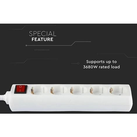 Bloc Multiprise avec Câble de 1,5mt 5 Prises 10A 2P + Shuko et Interrupteur Prise Shuko Couleur Blanche