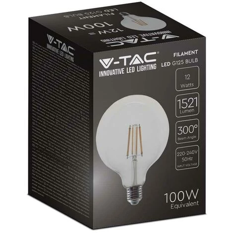 V-tac Filament LED Globe E27 6500K VT-2143-N 7455 217455 Lumen 1521 Température de couleur 6500K Température de travail -20°C à +45°C Dimensions 125x173mmTechnologie: Led