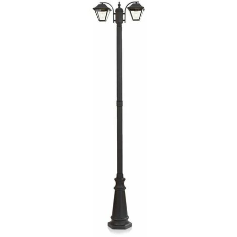 Lampadaire LED avec Douille Double Lanterne 2*E27 Couleur Noir Mat h: 228cm IP44