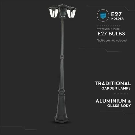 V-TAC Poteau De Jardin 3m De Haut Diamètre 70-75 IP65 Couleur Noir