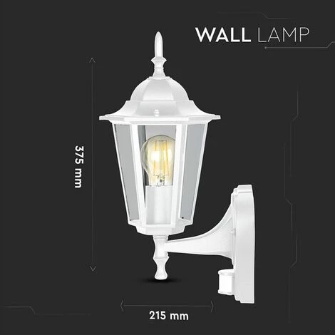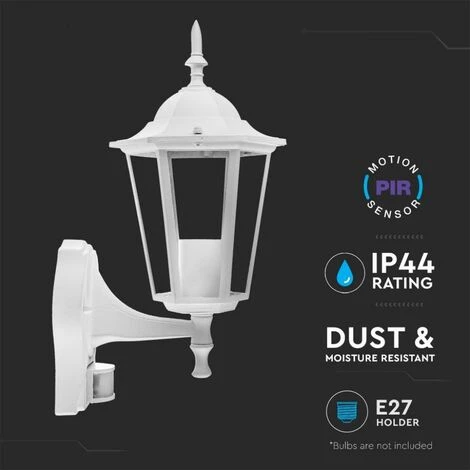 Lanterne Murale LED avec Douille E27 (Max 60W) avec Détecteur de Mouvement Couleur Blanche IP44