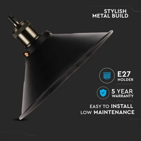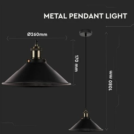 Lustre Cloche en Métal LED avec Douille E27 (Max 60W) Couleur Noir Mat