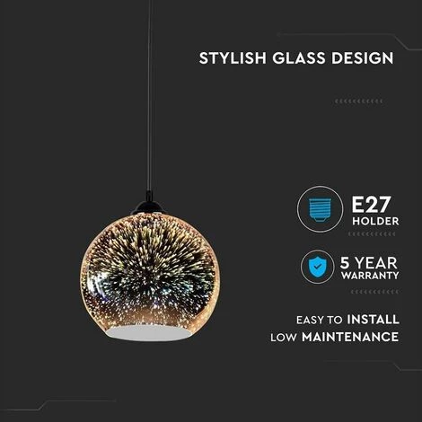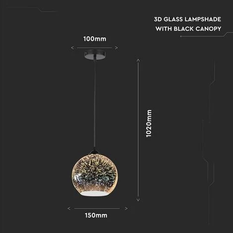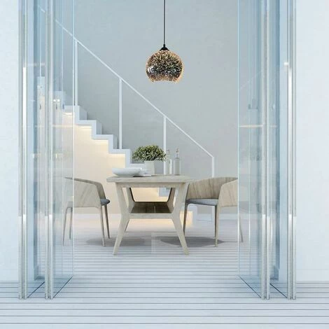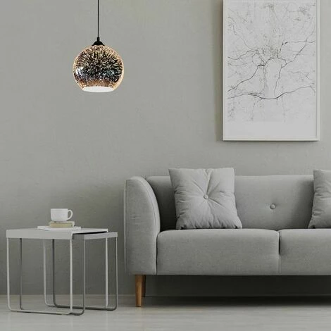 Lustre Suspension LED avec Douille E27 (Max 60W) Cloche en Verre Miroir Couleur Chrome avec Effet 3D d: 15cm