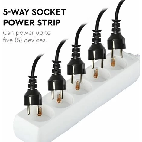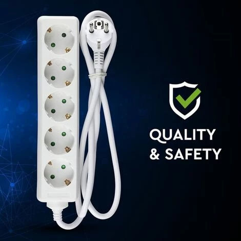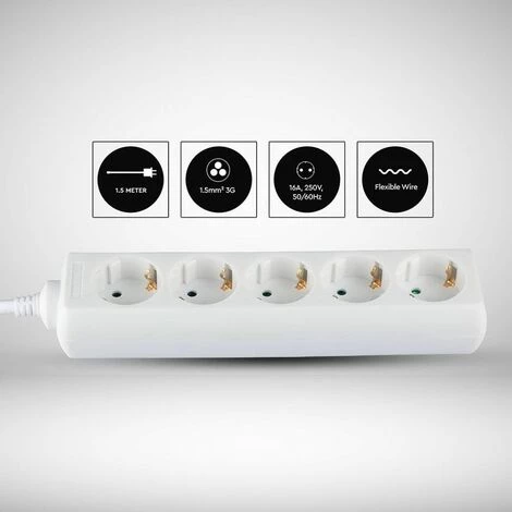 Multiprise avec câble de 1,5 mt 5 prises 10A 2P + Shuko et prise Shuko blanche