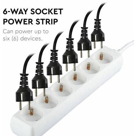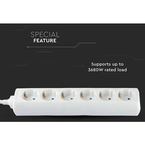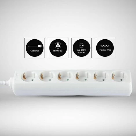 Multiprise avec câble de 1,5 mt 6 prises 10A 2P + Shuko et prise Shuko blanche