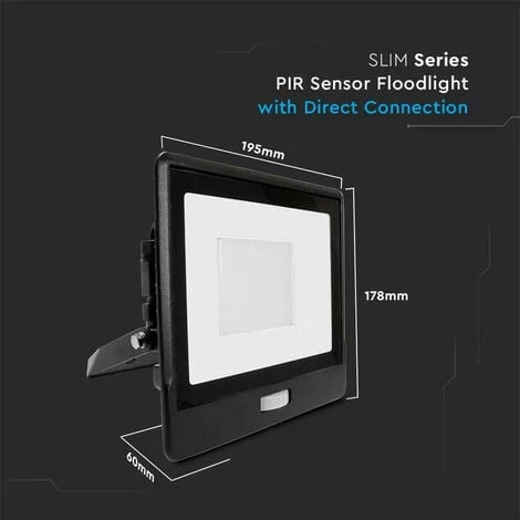 Projecteur LED 50W Noir détecteur de mouvement IP66