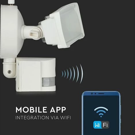 Projecteur LED 18W avec Capteur PIR et Caméra WiFi Couleur Blanche 6000K