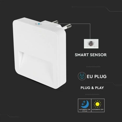 Samsung Chip LED Spotlight 0.45W Veilleuse carrée avec capteur crépusculaire Couleur blanche 65 * 65 * 50 mm 3000K IP20