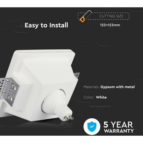 Spot LED Encastré Rond GU10 et GU5.3 (MR16) Corps en Plâtre Blanc