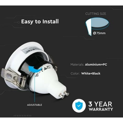 Support de projecteur encastré rond GU10 LED couleur blanche avec intérieur noir