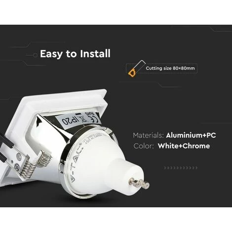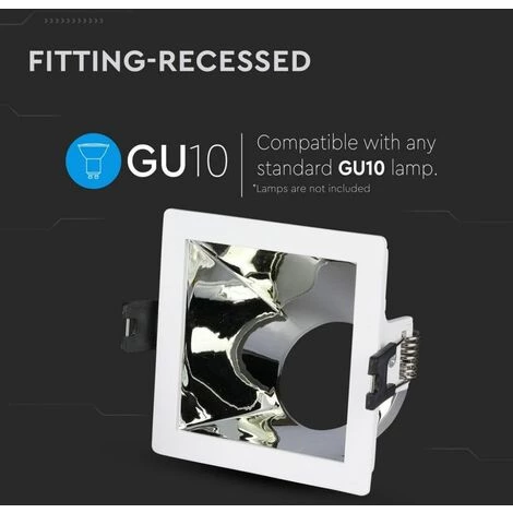 Support de spot LED encastré carré GU10 couleur blanche avec support incliné chromé