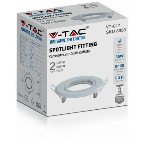 Support de Spot LED Encastré Rond GU10 Couleur Blanche (Boîte de 2 Pièces)