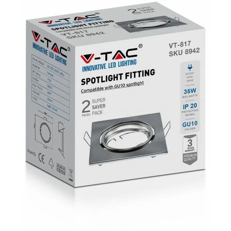 Support de Spot LED GU10 Carré Encastrable Couleur Nickel Satiné (Boîte de 2 Pièces)