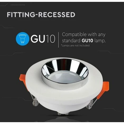 Support de spot LED rond GU10 et GU5.3 (MR16) Corps en plâtre blanc et métal chromé
