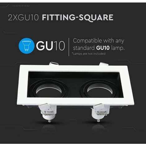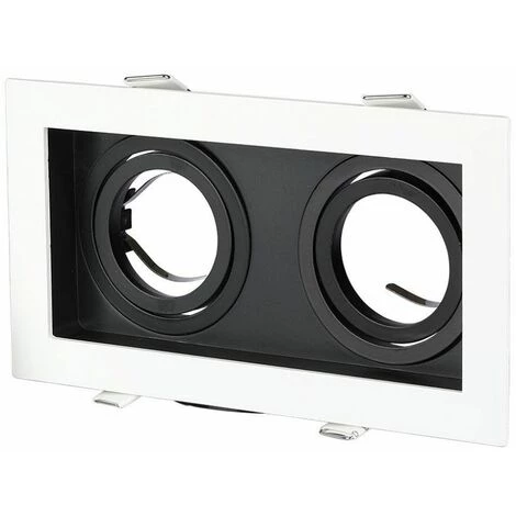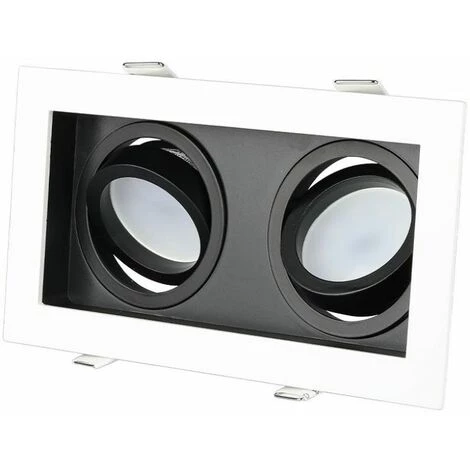Support Spot LED Encastrable Carré 2xGU10 Réglable Blanc et Noir