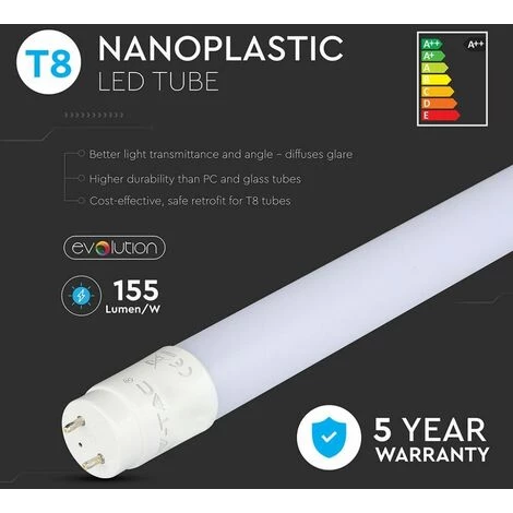 Tube LED T8 15W G13 150cm 160LM/W en Nanoplastique 4000K