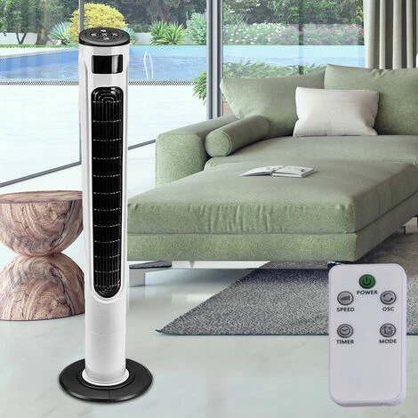 la description Ventilateur tour avec télécommande, commande vocale, panneau de commande et écran LED. Ce ventilateur sur pied puissant et très silencieux de 55 watts assure le refroidissement souhaité par temps chaud. Il a trois niveaux de vitesse et trois modes de vent différents, ainsi qu’une fonction de virage.