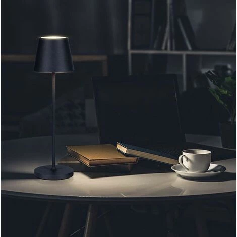 La lampe est équipée d’un éclairage LED intégré, dont l’intensité peut être facilement réglée grâce à l’interrupteur tactile situé sur la lampe elle-même. L’allumage et l’extinction sont faciles grâce à un bouton tactile situé sur le luminaire. La lampe est livrée avec une station de charge, qui est équipée d’une connexion USB.