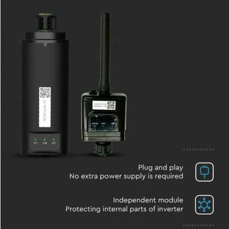 Dongle Wifi V-tac pour onduleur solaire VT-660000 – 11378Dongle Wifi pour onduleur solairePlug and play Aucune alimentation supplémentaire n’est nécessaireModule autonome qui protège les parties internes de l’onduleurConception étanche à l’eauRésistant aux intempéries. Watts 1.5. ***